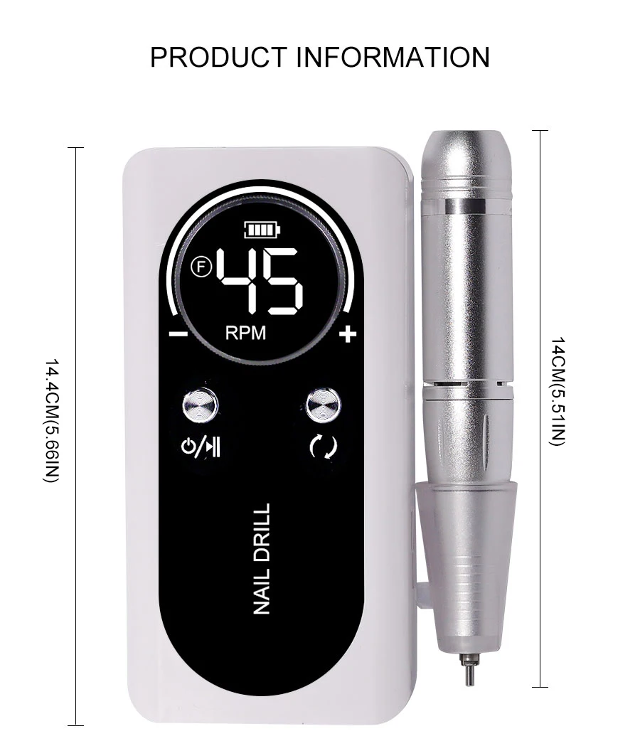 Rechargeable Nail Drill Machine with LCD Low Noise Professional Nail Polish Sander